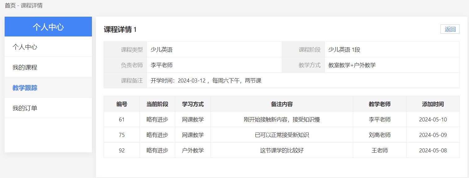 学员的学习进度及教学跟踪记录,每节课每阶段的状态,一目了然